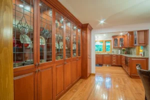 - Custom Cabinetry – Designed and built in-house — inset shaker doors, walnut interiors, and satin “Antique Cream” lacquer finish.