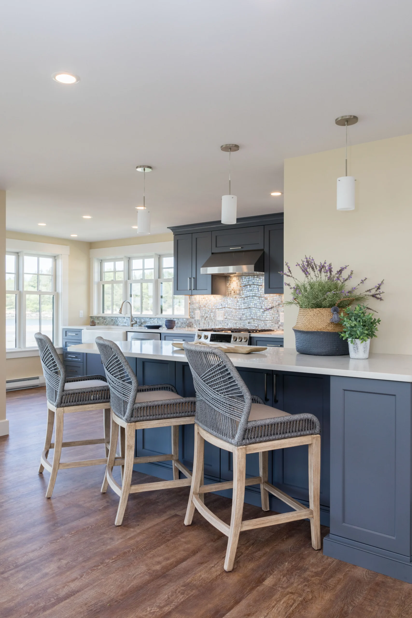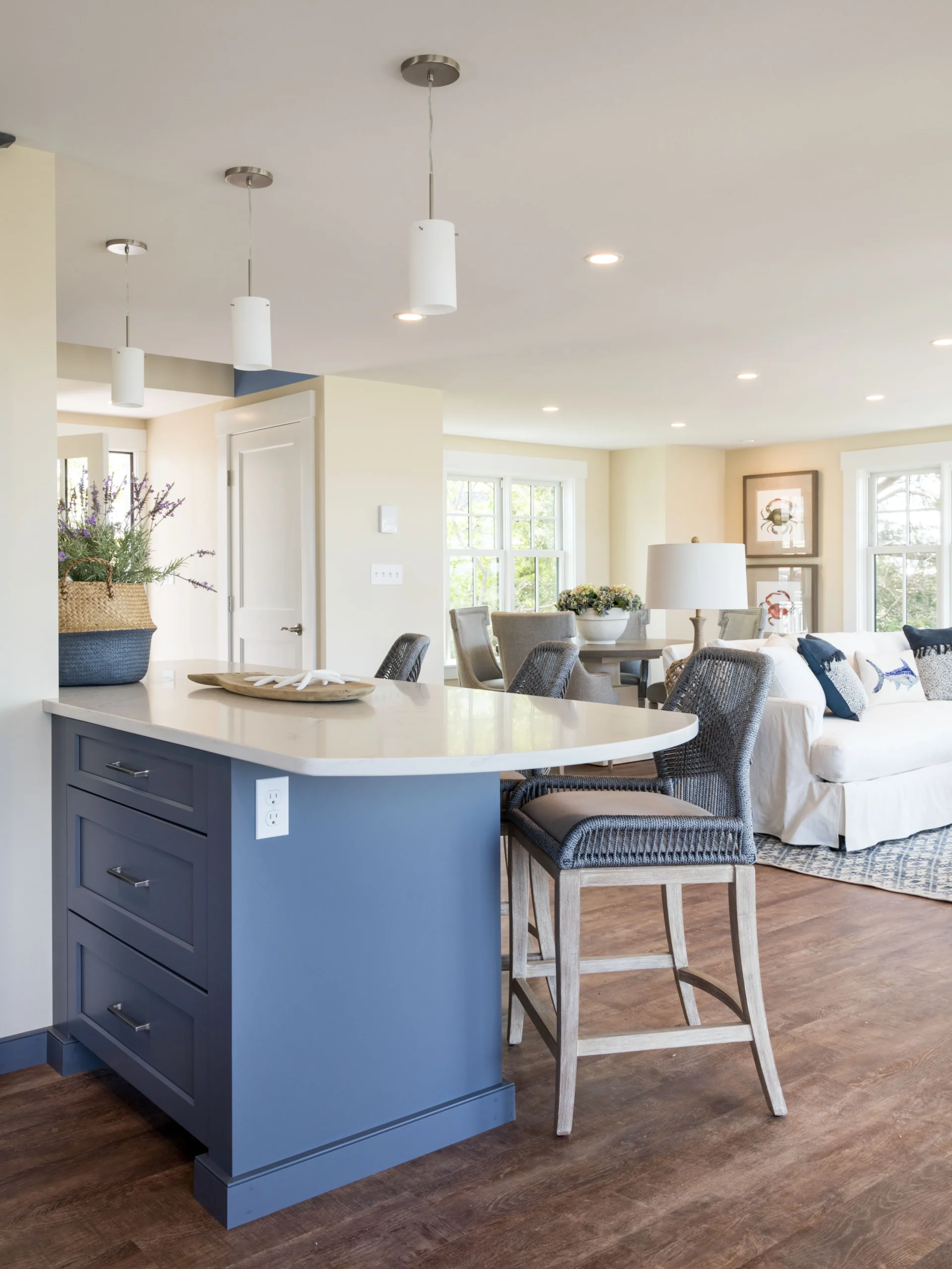 - After – Full coastal luxury reveal; bright, open, and inviting culinary centerpiece.