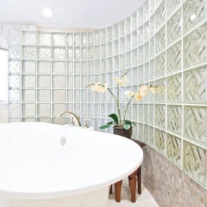 Glass block walls are ideal in wet environments—they allow light transmission while maintaining privacy, resist moisture, and offer aesthetic texture. Manufacturers like Hawkeye Glass Block highlight these benefits for bathroom windows and partitions.