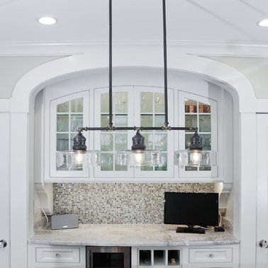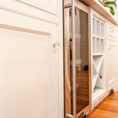 Highlight: We reshaped a wall to introduce a beautifully proportioned alcove with built-in cabinetry and niche lighting. Traditional moldings and custom wainscoting were matched to original trim. The result is an elegant dining space with vertical emphasis and visual depth.